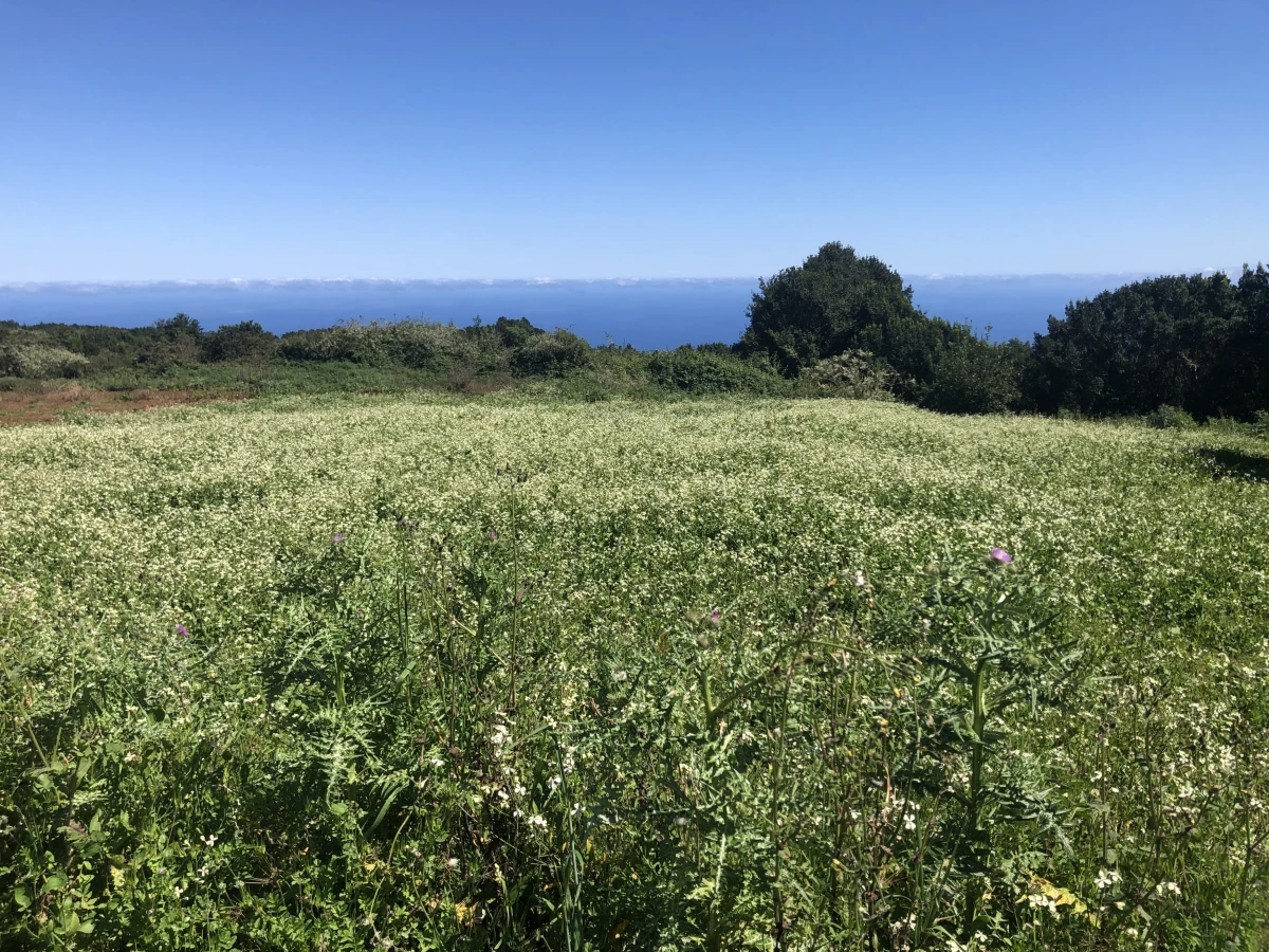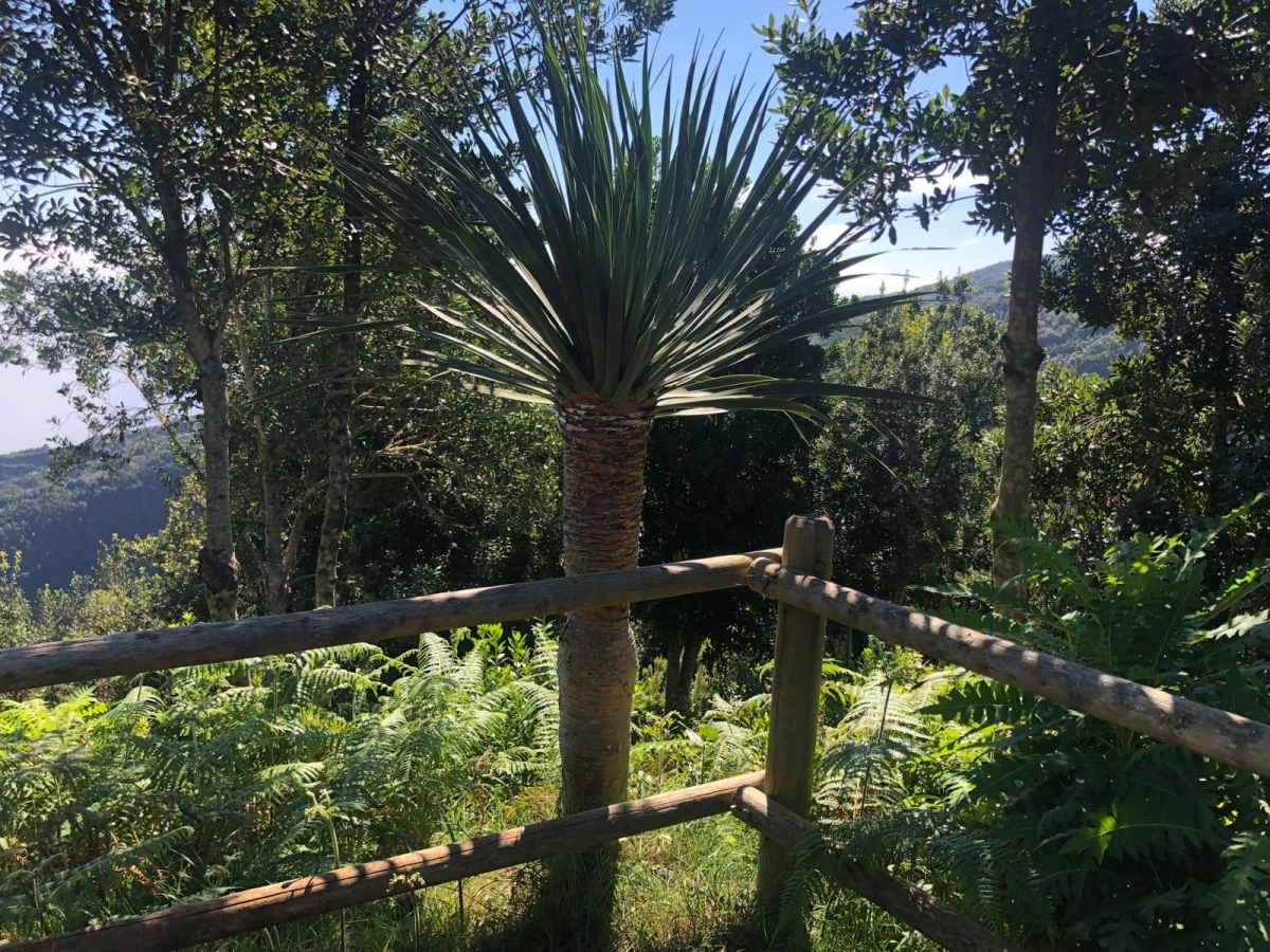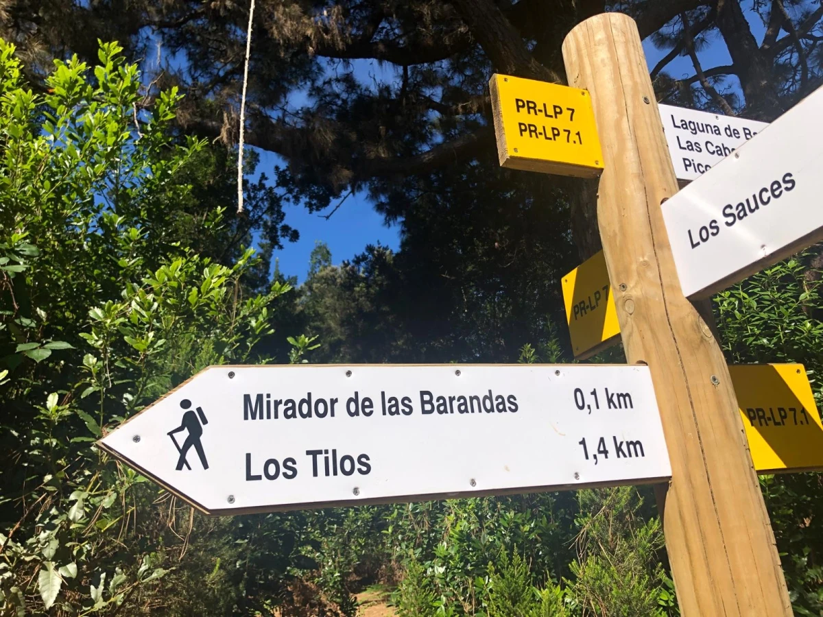 Oben angekommen wird man belohnt mit einer grandiosen Aussicht. Talwärts Richtung LOS SAUCES und SAN ANDRÉS, aber auch bergan über die dichten, grünen Berghänge Richtung CUMBRE ist der Blick einzigartig. Natürlich empfiehlt sich der MIRADOR auch für die erste Pause. Es gibt hier seit einigen Jahren einen schönen Holzpavillon, der neben Schatten auch Tische und Bänke für eine gemütliche Rast bietet. Auch eine Frischwasserquelle zum Auffüllen der Wasserflaschen gibt es hier.