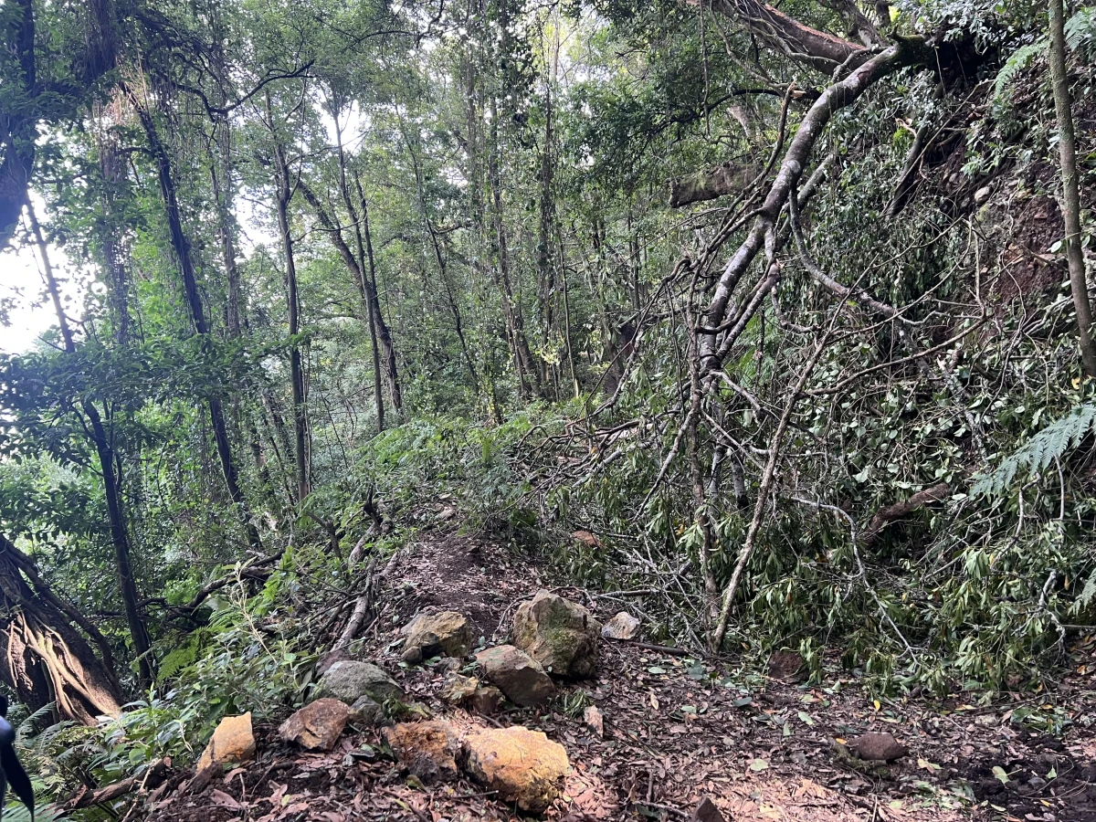 Auf dem Weg sind nur wenige Wanderer unterwegs. Das liegt daran, dass es sich nicht um einen Rundweg handelt, sondern um eine Tour, die weit weg vom Startpunkt endet. Auf dem Weg gilt es immer wieder umgestürzte Bäume zu "umklettern" und Steinschlag hat es hier auch gegeben. Große und kleine Brocken von Gestein liegen immer wieder auf oder entlang der Wegstrecke. Dies ist sicher auf die starken Regenfälle in den Monaten Dezember und Januar zurückzuführen.
